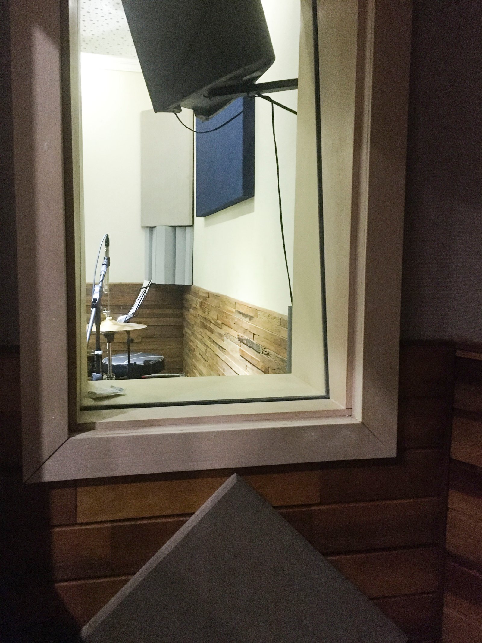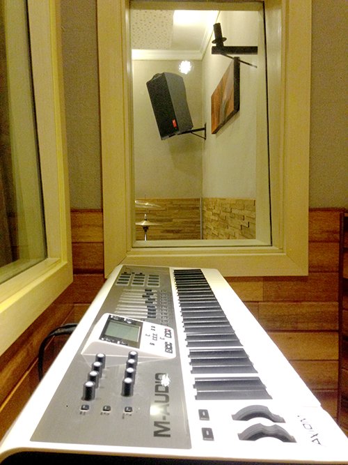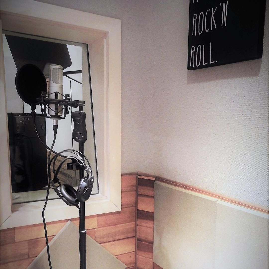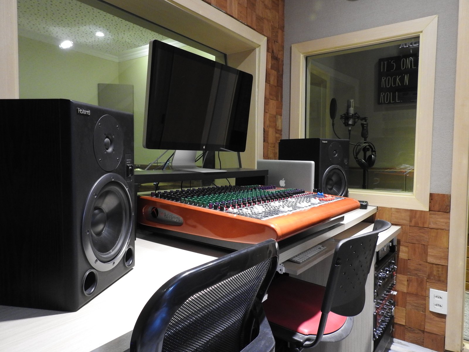 A cabine de voz foi projetada para interações fluidas. Com isolamento acústico e 2 visores, o vocalista se comunica visualmente com a sala técnica e o estúdio ao mesmo tempo.